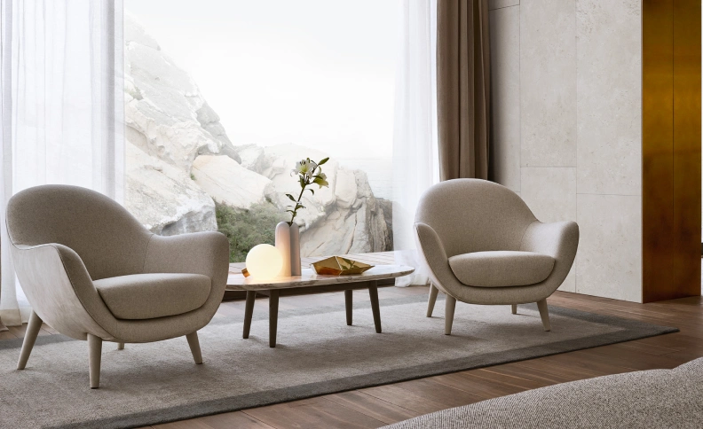 Finally, complete your spaces with armchairs to create a pared-back contemporary atmosphere full of character.