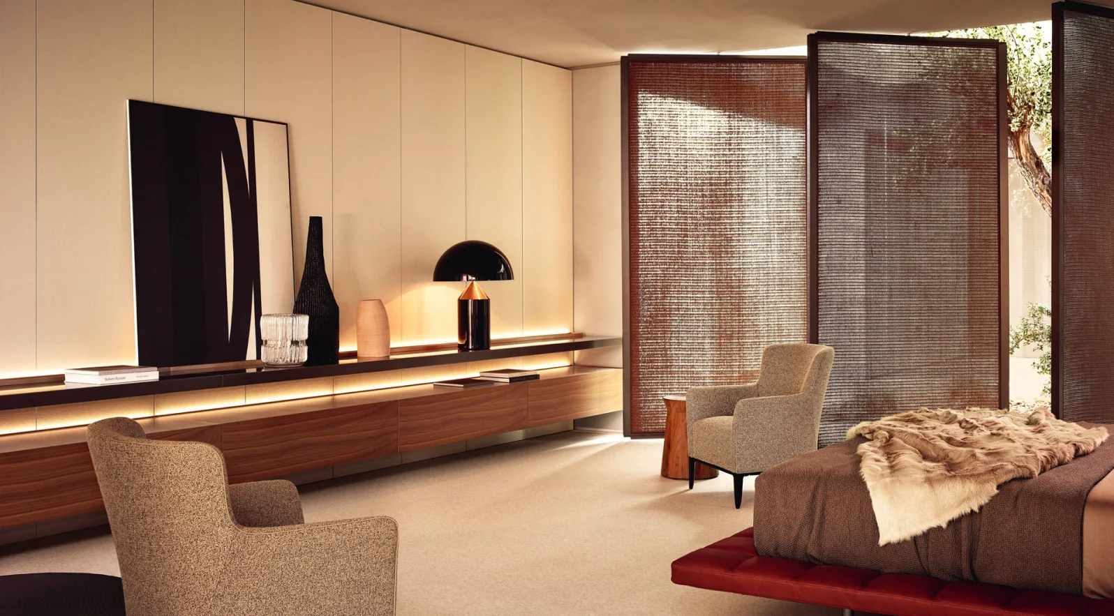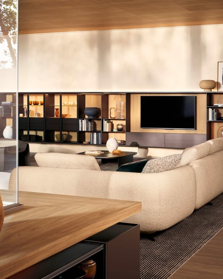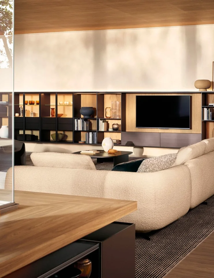 Choosing storage systems from Poliform means opting for absolute sophistication in your interior. The clean lines of the collections, enhanced by meticulous finishes where every detail is a nod to technology and design, embody a discreet yet uncompromising form of luxury. Our team supports you in creating strong focal pieces for your interiors that bring the level of organisational practicality you expect, combined with the elegant and resolutely contemporary touch that defines Poliform. The systems are manufactured and assembled in Italy in Poliform’s factories, before being installed in your home by our teams.