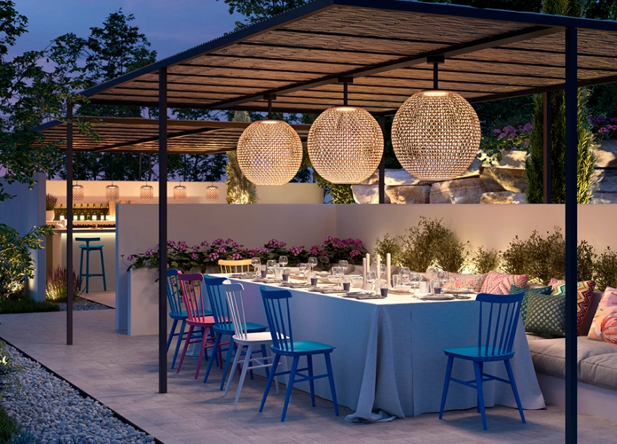 Le luci da esterno definiscono le atmosfere notturne di terrazze e giardini. Lampade portatili, paletti, applique o sospensioni: ti aiutiamo a creare scenografie luminose che valorizzano i tuoi spazi, garantendo al contempo sicurezza e comfort visivo.